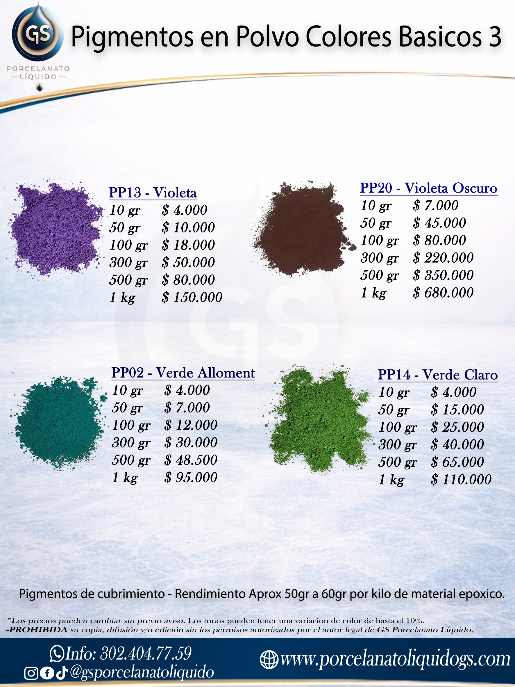 Lleva la creatividad de tus diseños al siguiente nivel con la Colección 3 de Pigmentos Básicos GS. Esta serie de polvos pigmentados está seleccionada para ofrecer tonos sólidos que permiten una saturación de color perfecta, ideal para quienes buscan acabados uniformes y vibrantes en cada aplicación de resina.