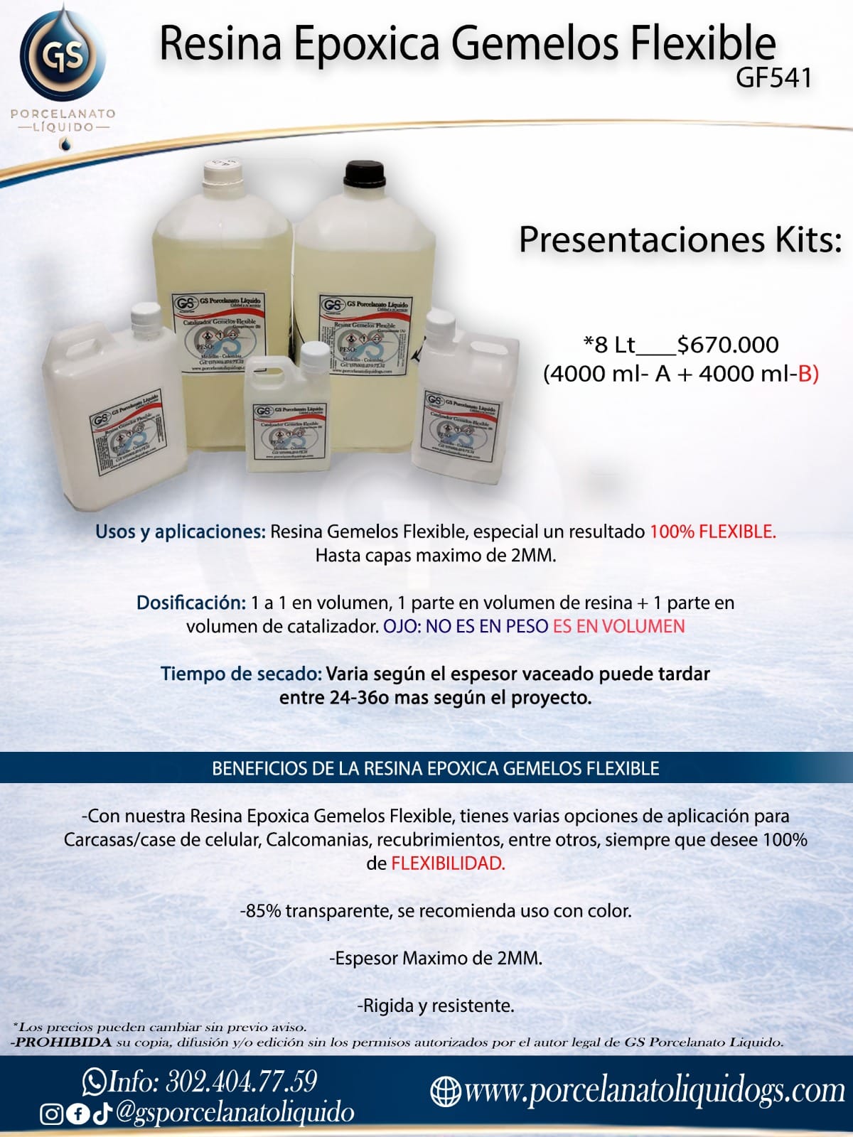 La Resina Gemelos Flexible de GS Porcelanato Líquido es la solución profesional para acabados que requieren elasticidad, resistencia al impacto y un brillo excepcional. A diferencia de las resinas rígidas, este sistema permite que la pieza final conserve una flexibilidad controlada sin llegar a romperse o agrietarse, lo que la hace perfecta para aplicaciones industriales y decorativas.